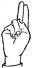 На ћирилици написано КРИСТИЈАН ОЉАЧА састоји се из 14 слова [?]. Исписано ћириличном једноручном азбуком за глувонеме: